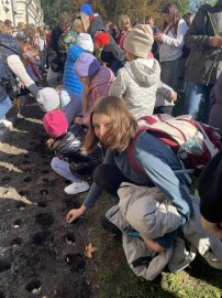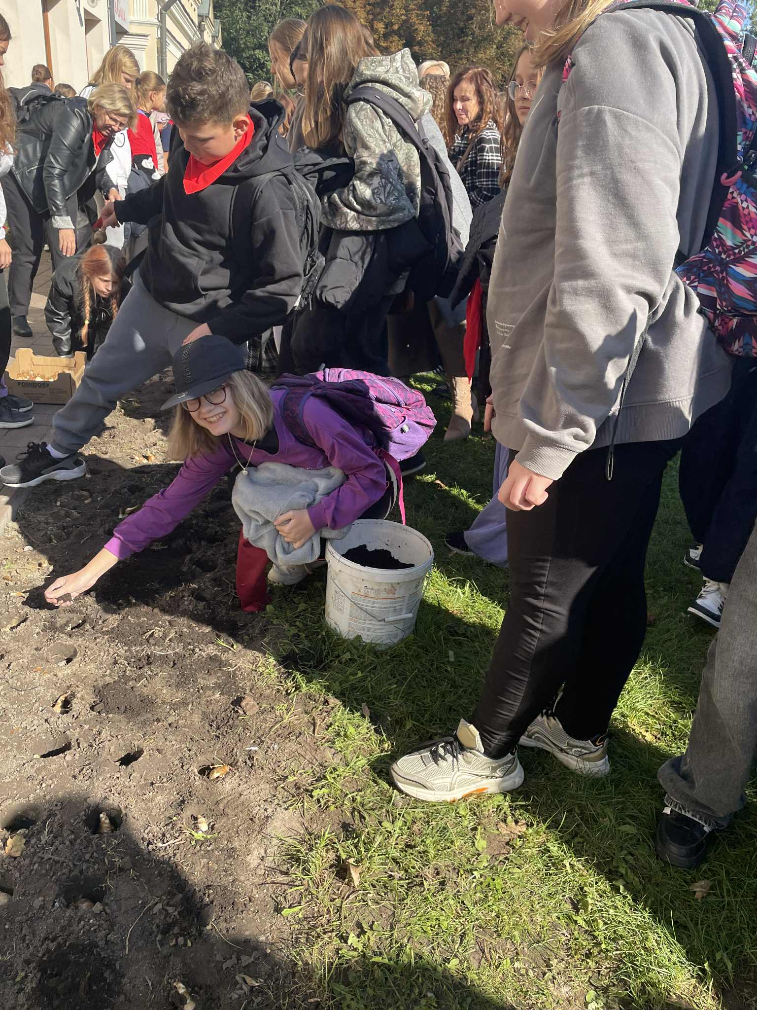 8 października przedstawiciele naszej szkoły uczestniczyli w wyjątkowym wydarzeniu – wspólnym sadzeniu żonkili przed ośrodkiem hospicjum Santa Galla w Łabuńkach Pierwszych. Był to symboliczny gest solidarności z osobami chorymi i cierpiącymi, a także wyraz wsparcia dla idei niesienia pomocy innym.