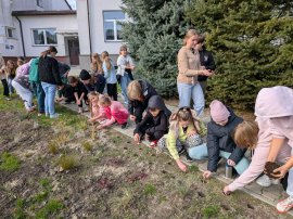 W ramach akcji „Pola Nadziei” uczniowie Szkoły Podstawowej w Krynicach – od klasy I do VIII – z ogromnym zaangażowaniem posadzili 150 cebulek żonkili na terenie naszej szkoły. Kwiaty te, gdy zakwitną wiosną, staną się symbolem nadziei, pamięci i życzliwości wobec pacjentów hospicjum.